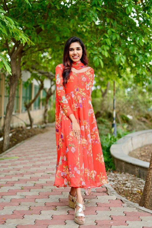 Georgette floral print Anarkali with dupatta