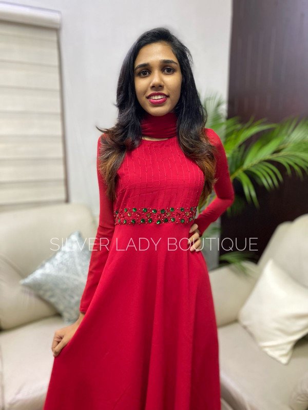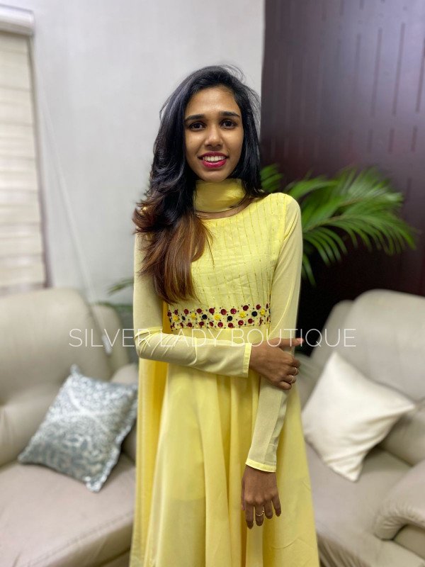 Georgette Anarkali with hand work on yoke
