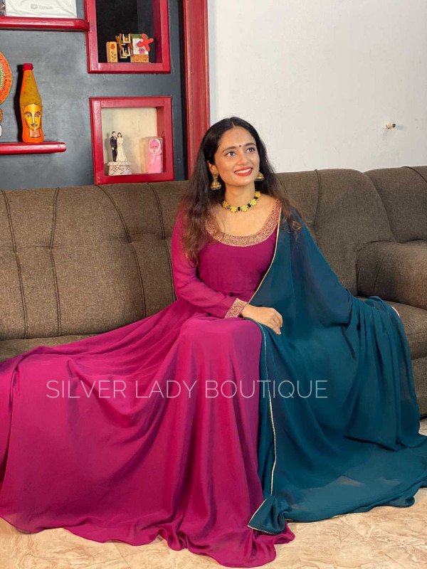 Georgette handworked Anarkali with dupatta