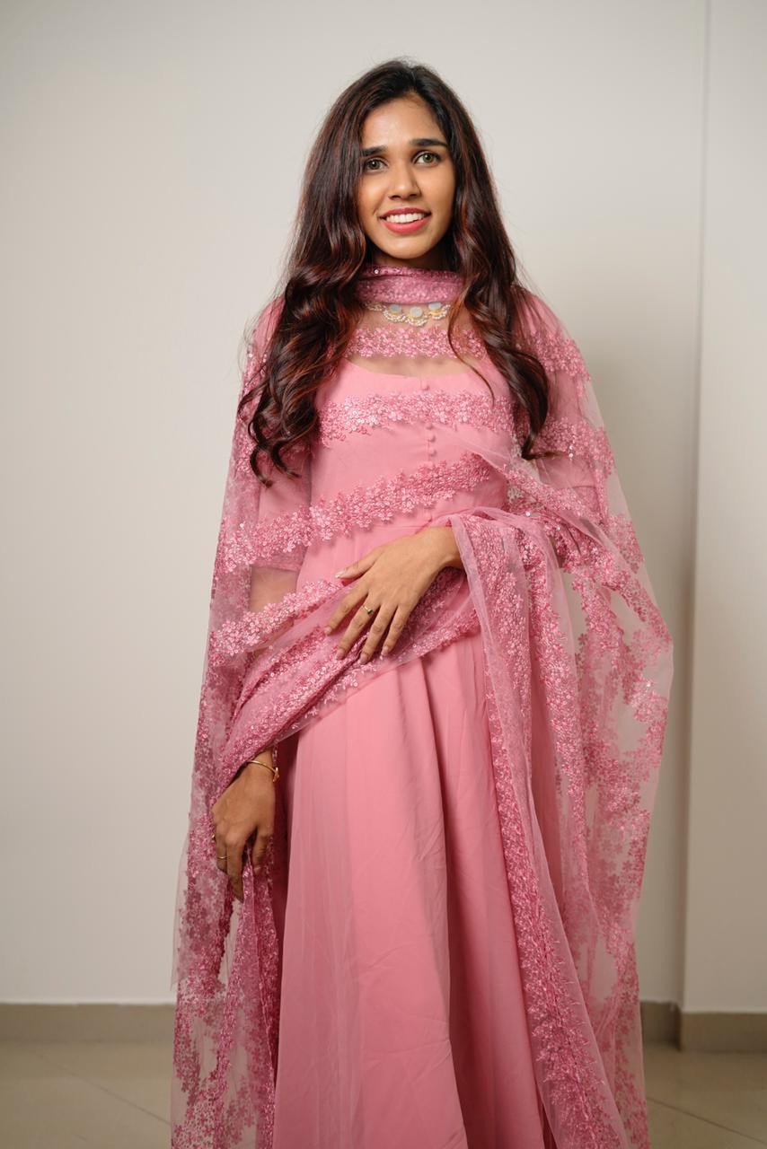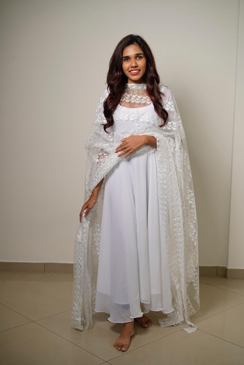 Faux georgette anarkali kurthi with net fully worked dupatta