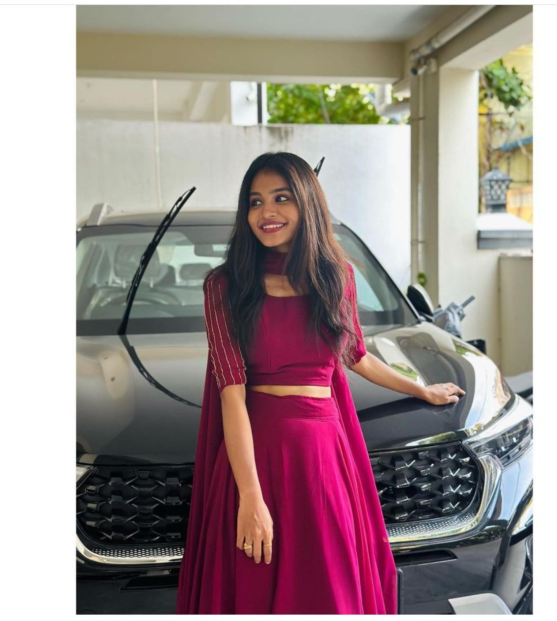 Fully stitched georgette skirt and dupatta with unstitched blouse piece with hand work on both sleeves