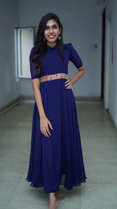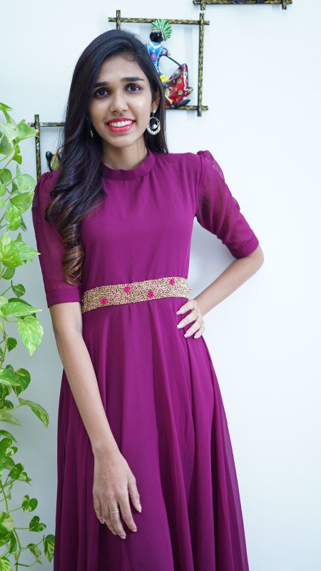 Georgette gown with handwork on waist portion
